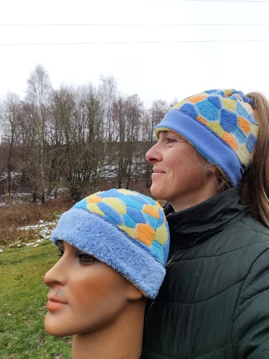 Rozměry: výška 23 cm, obvod 55 cm v nenataženém stavu – mírně pružné … zkoušeno na hlavu s obvodem 56 cm