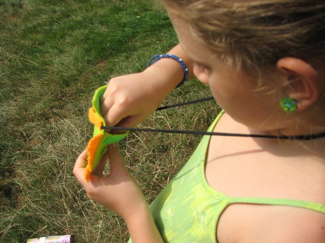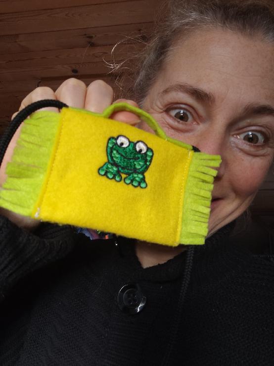 “ Dostala jsem od babičky korunky, tak mi je žabičko ohlídej a až si za ně koupím v obchodě sušenku, a půjdeme s dědou zpátky, dám ti ten pěkný lísteček, co tu leží.“