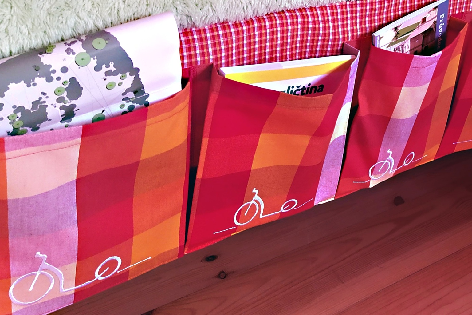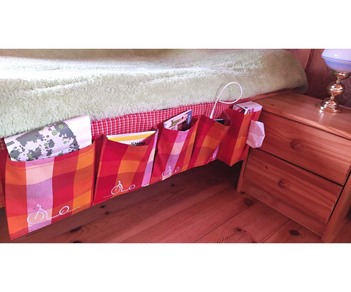 Kapsář pro odkládání všech možných nezbytností u postele. Hlavně, že už mi nic nepadá z nočního stolku a mám to hned po ruce. Když už ležím, strašně nerad(a) znovu vstávám. Tak rád(a) využiji pře spaním ještě chvilku pro těšení se a plánování dalšího koloběžkového výletu.