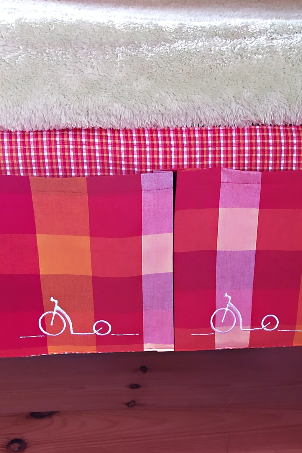 Kapsář zdoben vyšívanými koloběžkami