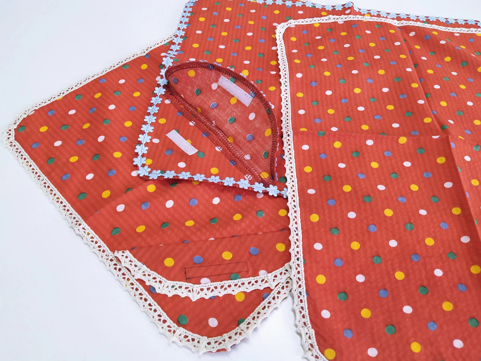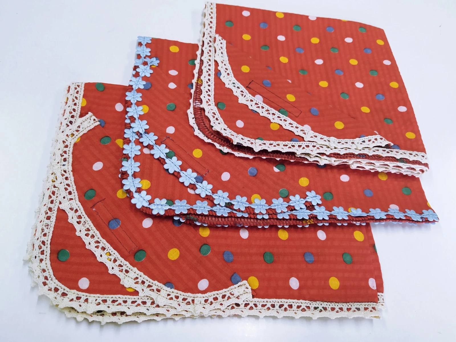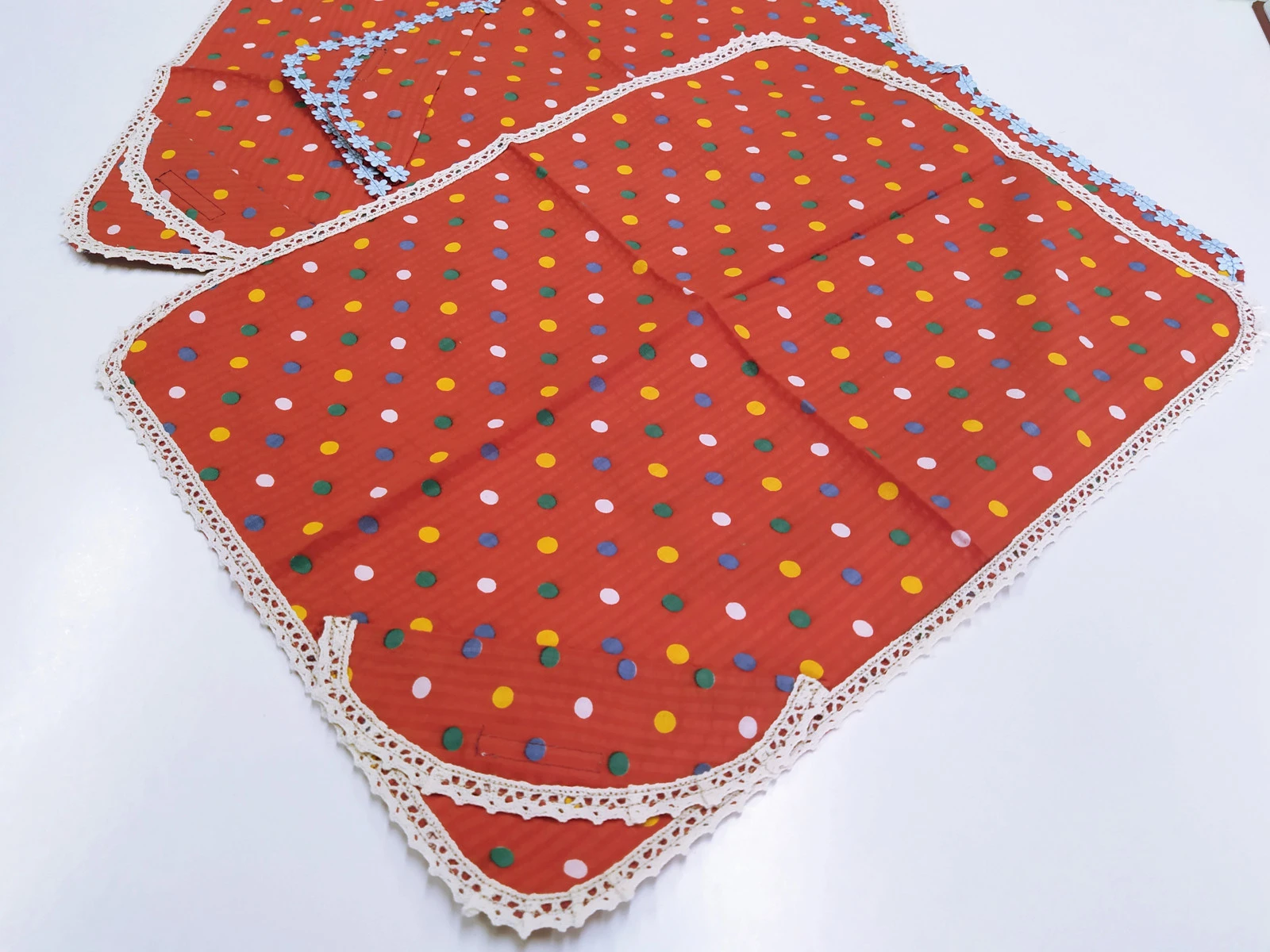 Zhotoveny z lehké bavlněné látky, okraje zdobeny různobarevnými prýmky.