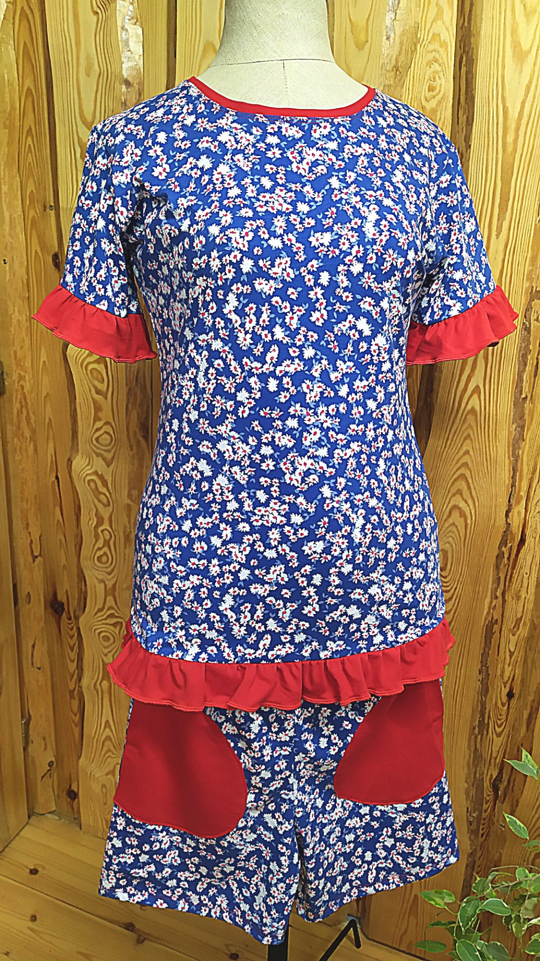 Bavlněné dámské pyžamo dvoudílné s volánky
