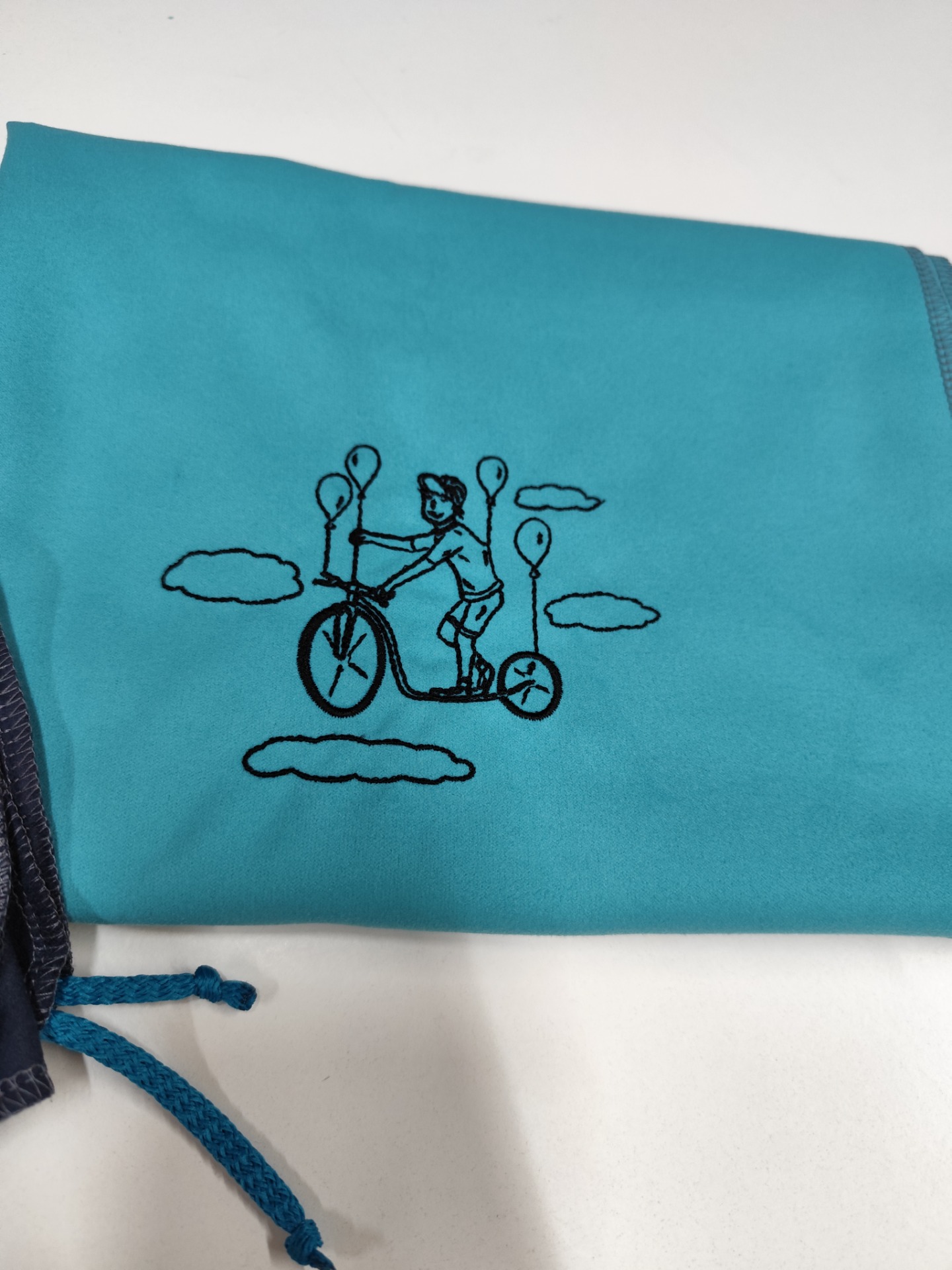 Rychleschnoucí ručník se zavazováním a autorskou výšivkou.