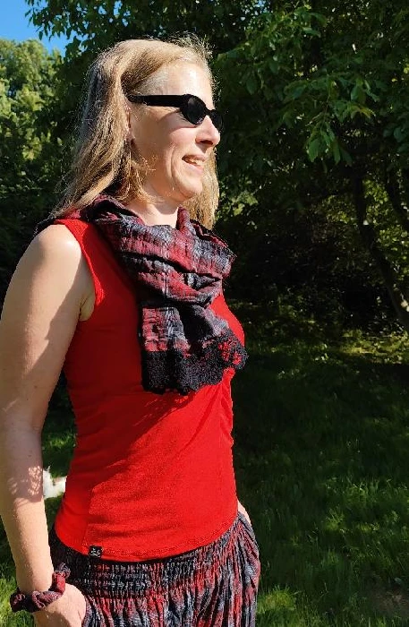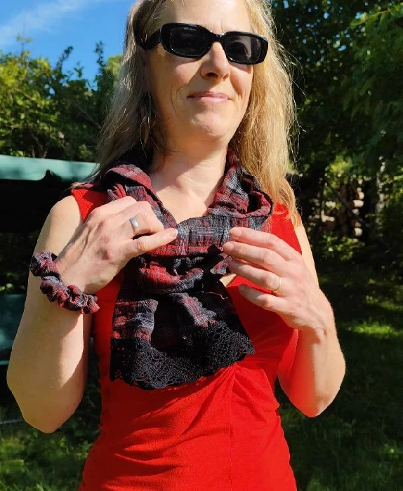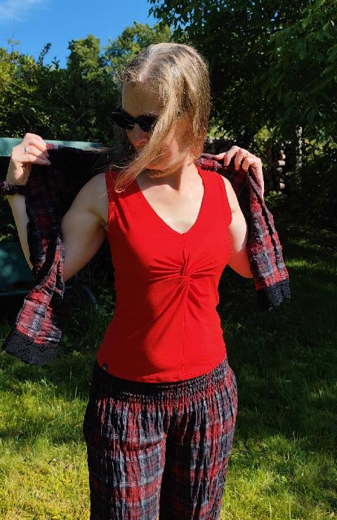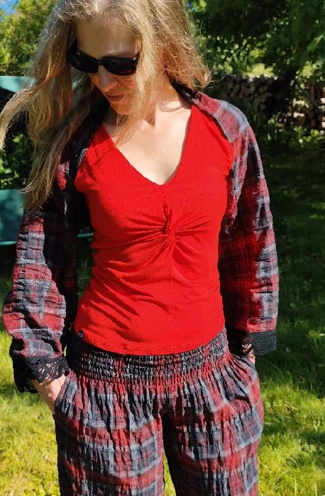 Materiál bavlna – krep, přirozeně mačkaná. Lze více či méně vyžehlit (po vyprání jsou díky krepovému mačkání užší a žehlením je můžete rozšířit)