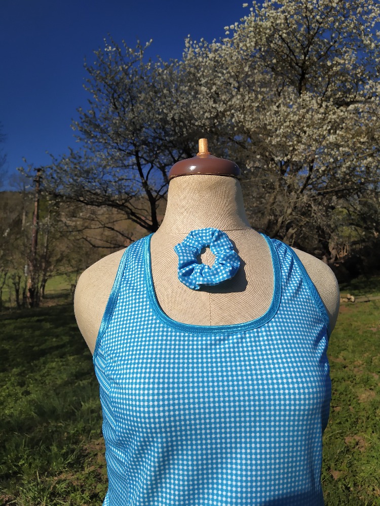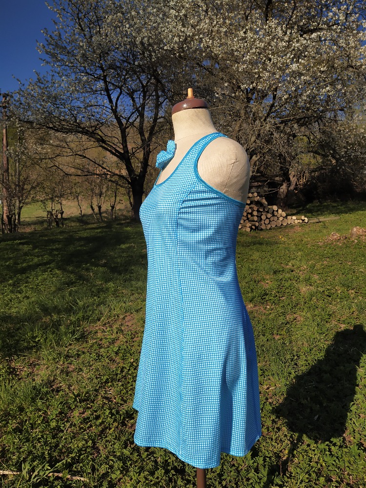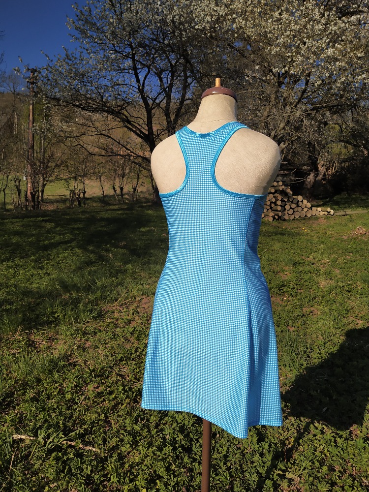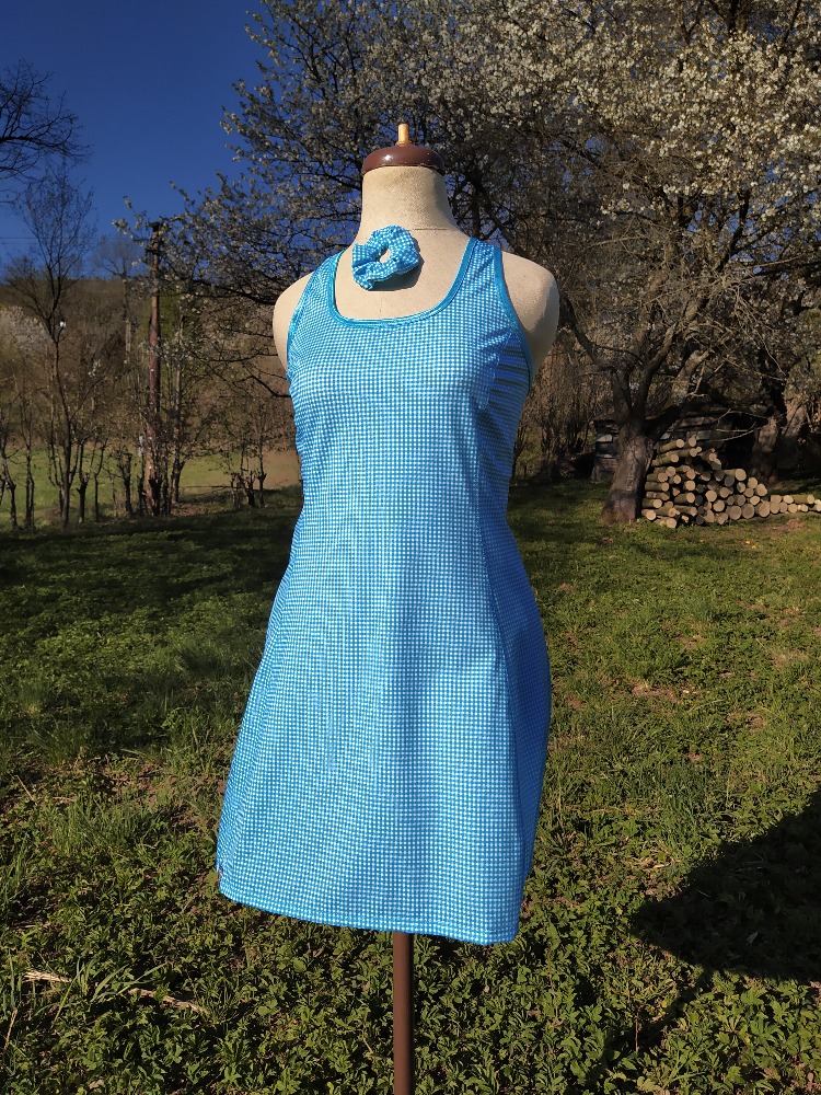 Sportovní šaty tyrkys kostička s tyrkysovým lemováním