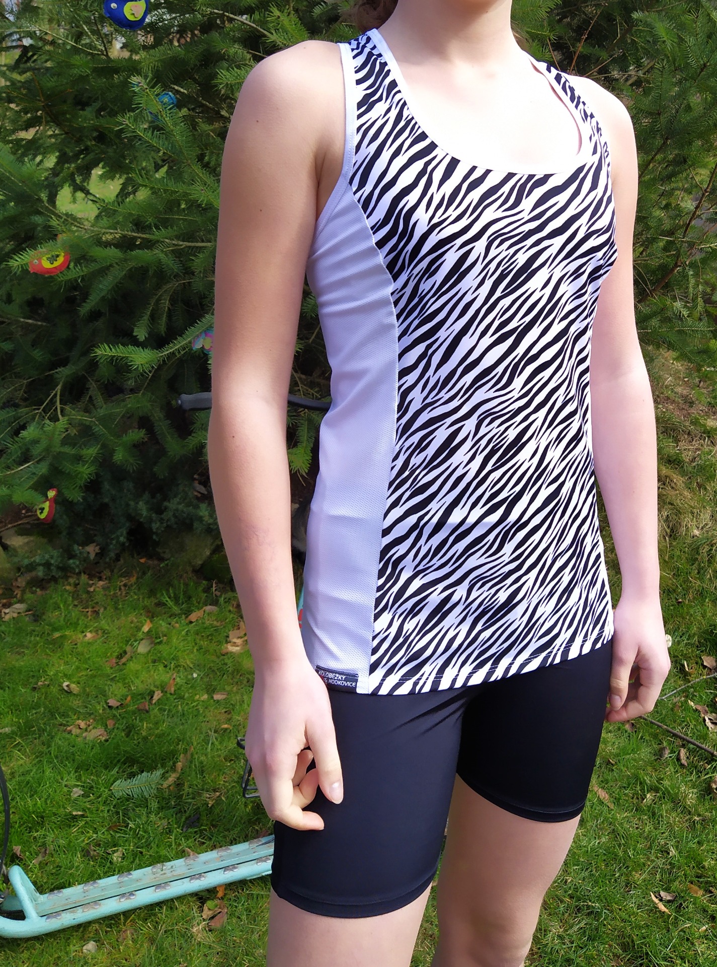 Sportovní tílko z funkčních materiálů, kombinace bílé zebry a bílého spideru na bočních dílech