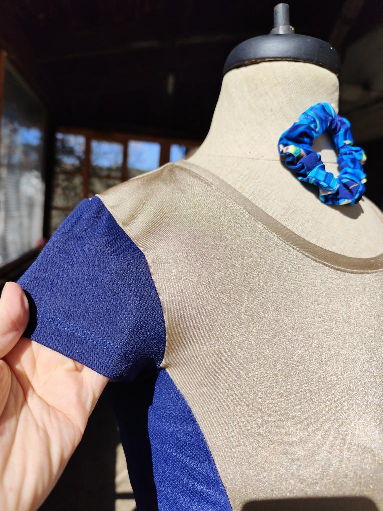 Sportovní tričko z funkčního materiálu, boční díly tmavě modrý dírkovaný spider