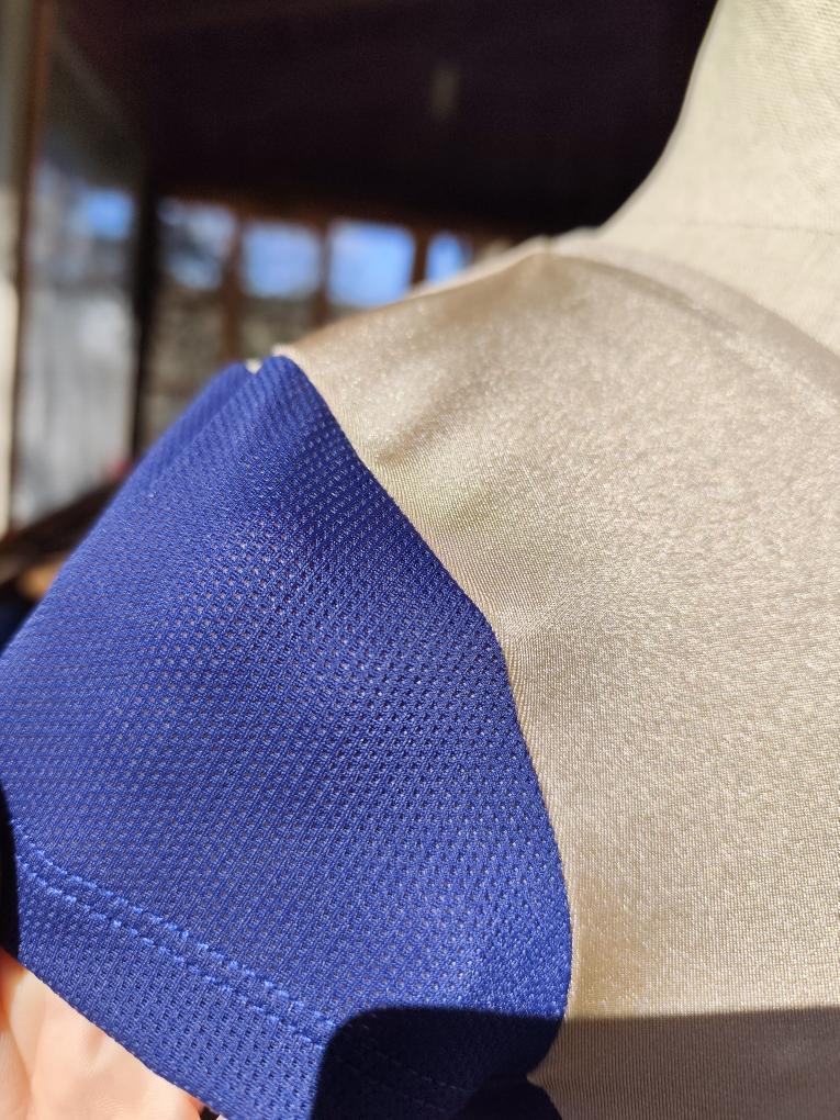 80% polyamid, 20% elastan (Hvězdy na růřové a bílý spider – jedná se o mikro-stretch síť, ideální látka pro výrobu vysoce výkonného sportovního oblečení. Svou speciální konstrukcí tkaniny umožňuje přirozené odpařování potu. Zaručuje vysoký komfort a vynikající prodyšnost. Pokožka sportovce zůstane tak vždy čerstvá a suchá po celou dobu sportovních aktivit.)