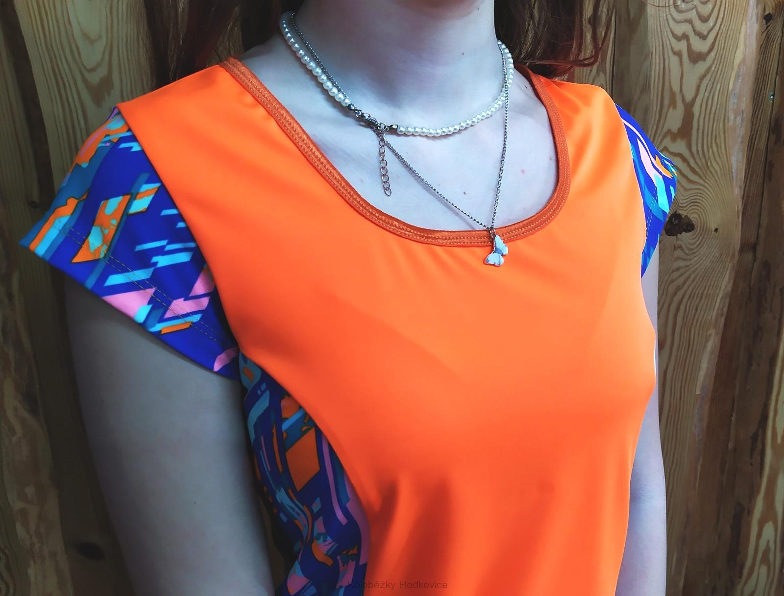 Sportovní tričko z funkčního materiálu Geometrie a oranžová