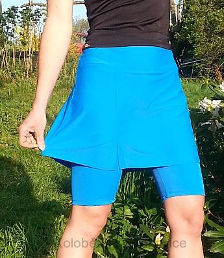 Sportovní sukně s širším pohodlným pasem, jednobarevná, kraťasy nad kolena, různé barvy
