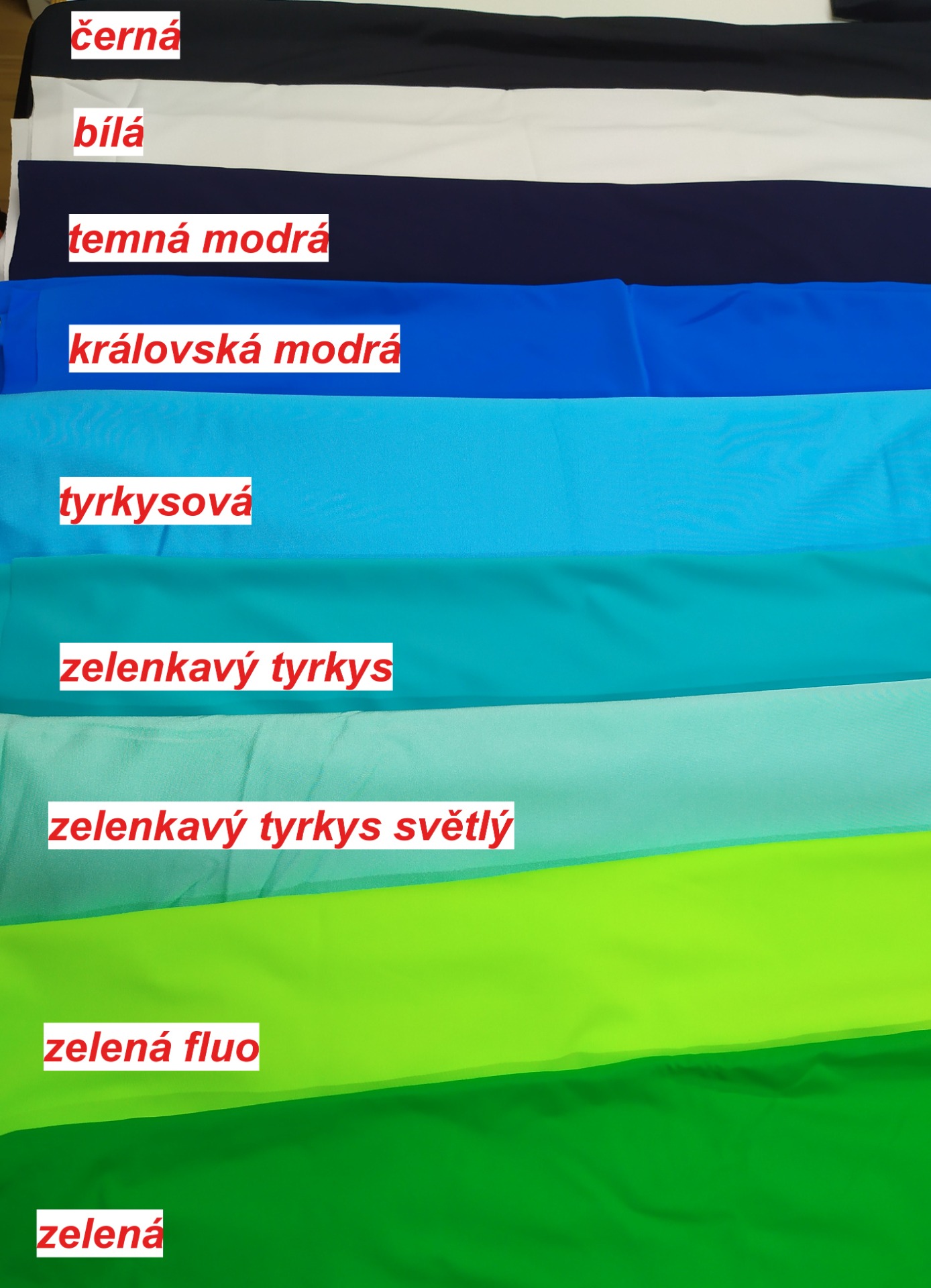 můžete zvolit i z uvedených jednobarevných možností, na hlavních fotografiích je sukně ušita z tyrkysové (pište do poznámky v objednávce):