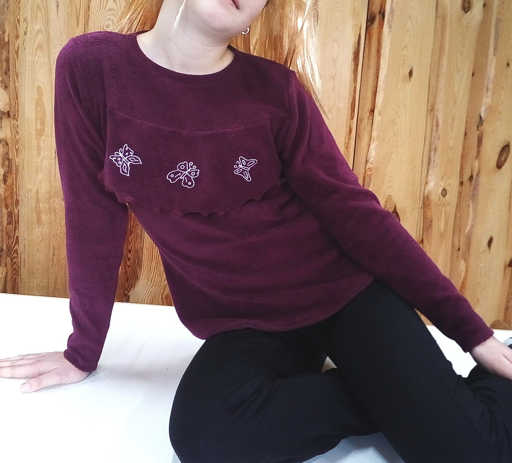 Tunika s autorskou výšivkou a volánkem, možnost kombinace s vyšívanou tunikou pro maminku.