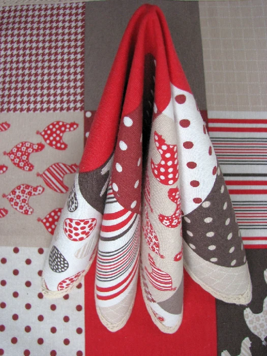 Zhotoveny z dovozové látky francouzské výroby (80%BA, 20% PES), okraje zdobeny krajkou.