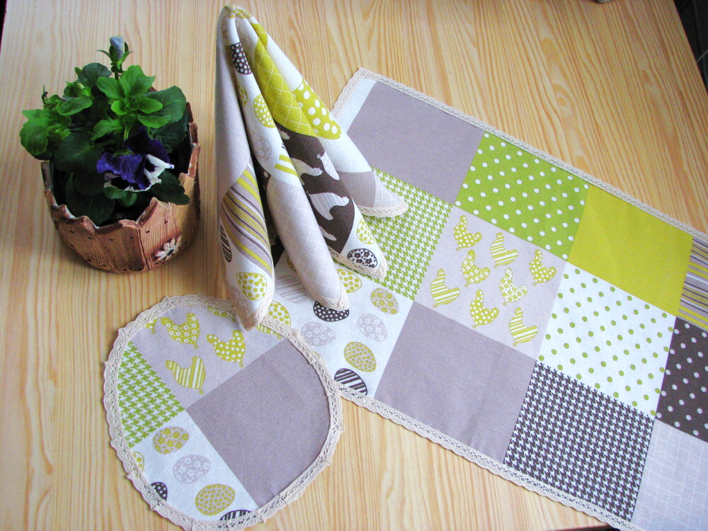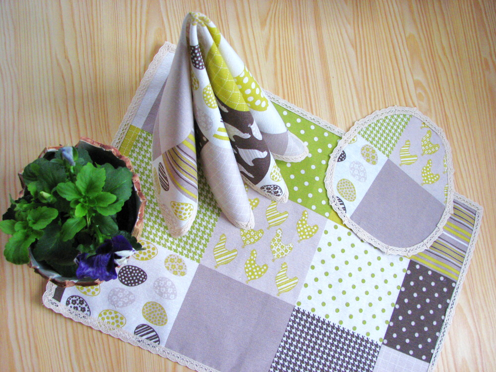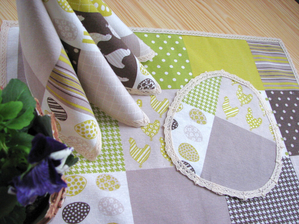 Jednotlivé prostírky se malinko liší – vzor kostek se různě střídá.