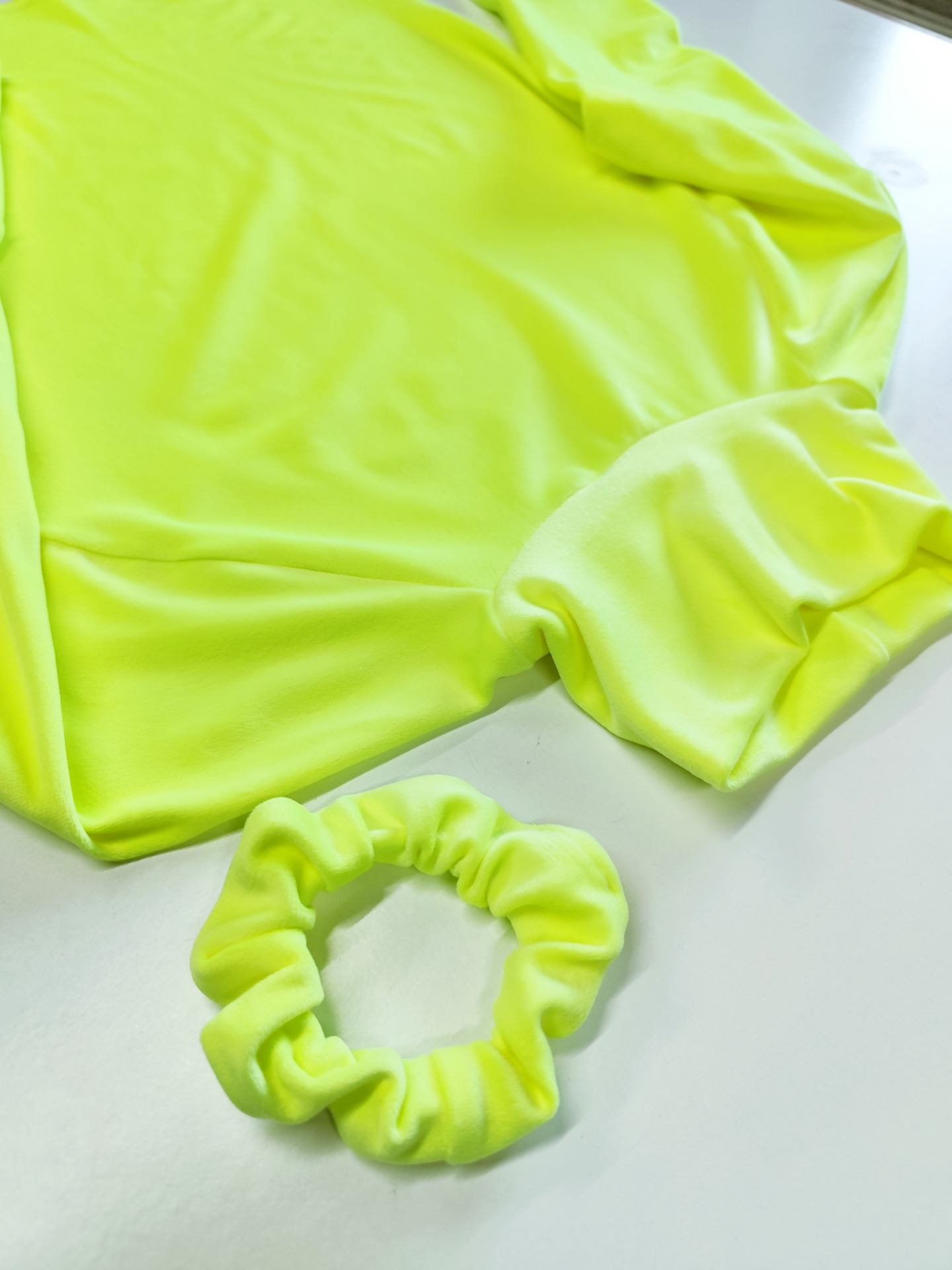 Gumička do vlasů ze stejného materiálu jako dárek.