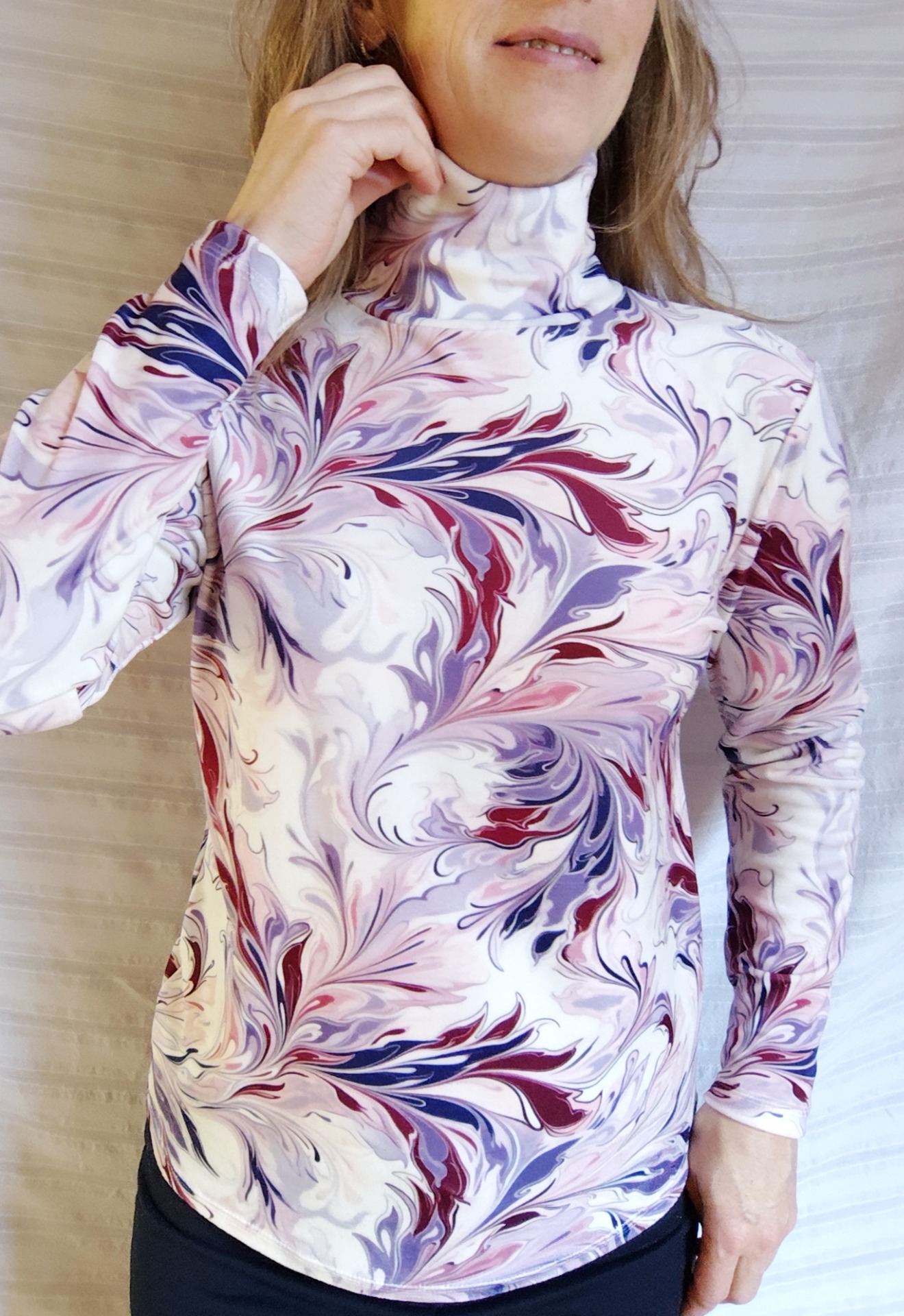 Velurový rolák vínovofialkový ornament, vel.42-44