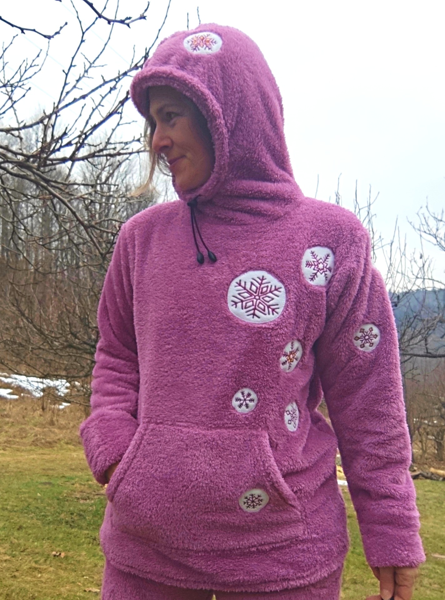 Dámská teplá mikina s vyšívanými vločkami.